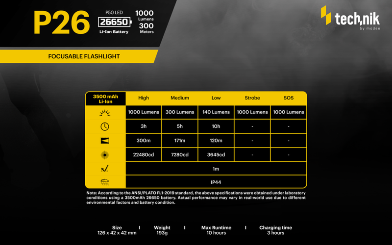 Flashlight P26 (+1x26650 3500mAh) P50 LED + USB-C rechargeable battery